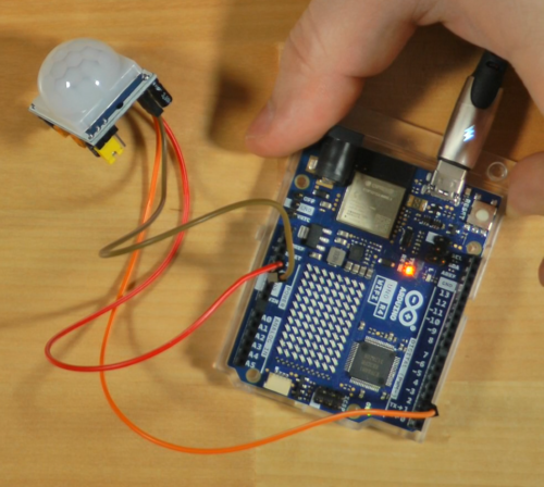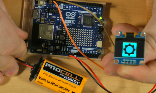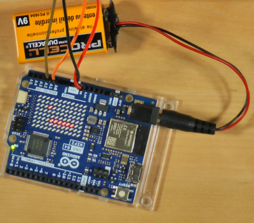 Next, we have something unique to the R4. Snake! That’s right, the favorite game of millennial flip phone users, now played on the LED array of the R4 itself. An LED lights up, with a small string of LEDs, the player, moving across the chip in the direction you press the joystick. As you cross over the rogue LED, your snake grows longer, and a new LED lights up elsewhere on the chip. This little game could only work on the new R4 thanks to the new LED array, and is a fantastic project to utilize the limited space and functionality.