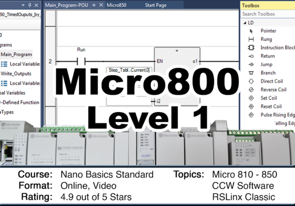 NOTE: If you’ve never programmed a Programmable Controller before you may want to take our “PLC Basics” course before you take this Micro 800 Programmable Controller course.